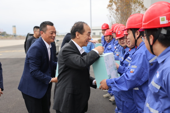 11月12日,上海市經濟信息化工作黨委書記程鵬一行到上海電建建筑公司參建的國家級海上風電研究與試驗檢測基地工程項目進行調研。上海市經濟信息化工作黨委辦公室主任胡玉琳、工會副主任陳波,上海電建副總經理史耀輝陪同調研。 程鵬一行深入施工現場,實地考察該項目的傳動鏈廠房、葉片試驗車間、調度室的建設情況,并聽取了項目生產經營、技術創新、安全管理等方面的匯報,對項目建設取得的成績給予了充分肯定。 程鵬指出,國家級海上風電研究與試驗檢測基地項目是國家“十四五”規劃的重大項目,也是我國首個國家級海上風電試驗基地。要科學組織施工,確保重大工程建設有序推進;要以精益求精的工匠精神打磨細節,嚴把全鏈條質量關;要樹牢安全發展理念,守牢守穩安全生產底線,為深入推動清潔能源發展、建設綠色中國作出貢獻。 調研期間,程鵬與項目一線建設者親切交談,并為大家送上慰問品。 上海電建工會副主席,建筑公司黨委副書記、紀委書記、工會主席及相關部門負責人參加調研。 |